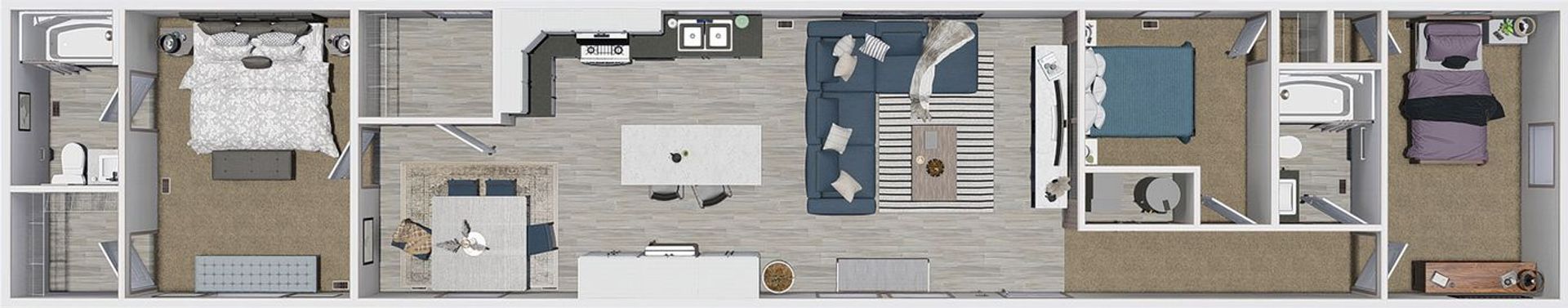 You’ll instantly fall in love with this stunning new 3-bedroom, 2-bathroom home, crafted with today’s lifestyle in mind. From the moment you step inside, you’re greeted by elegant, high-end finishes and a smart, open layout that blends comfort with practicality. At the center of the home is a beautifully designed kitchen, complete with a spacious island, modern stainless-steel appliances, and ample storage—ideal for cooking, gathering, and everyday living. The luxurious master suite features two generous walk-in closets and a private en-suite with dual sinks for added ease. On the opposite side, two more bedrooms share a full bathroom, offering privacy and versatility for family or guests.